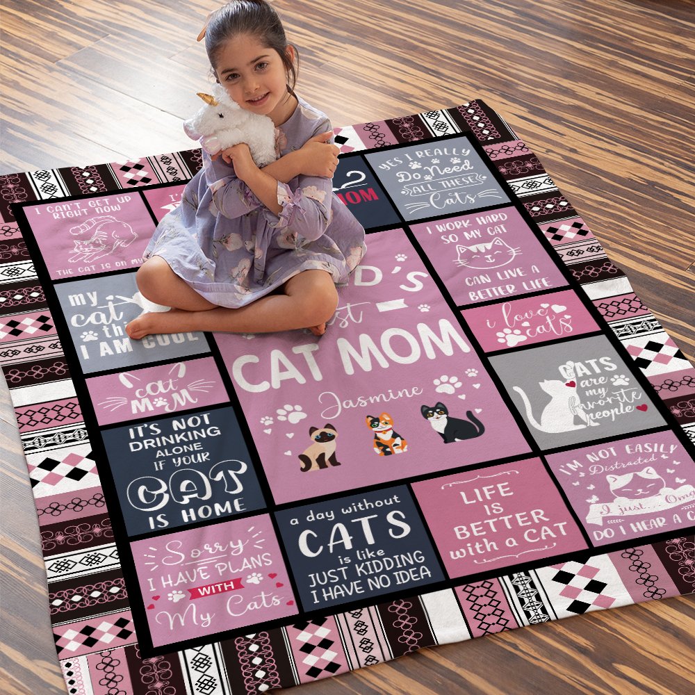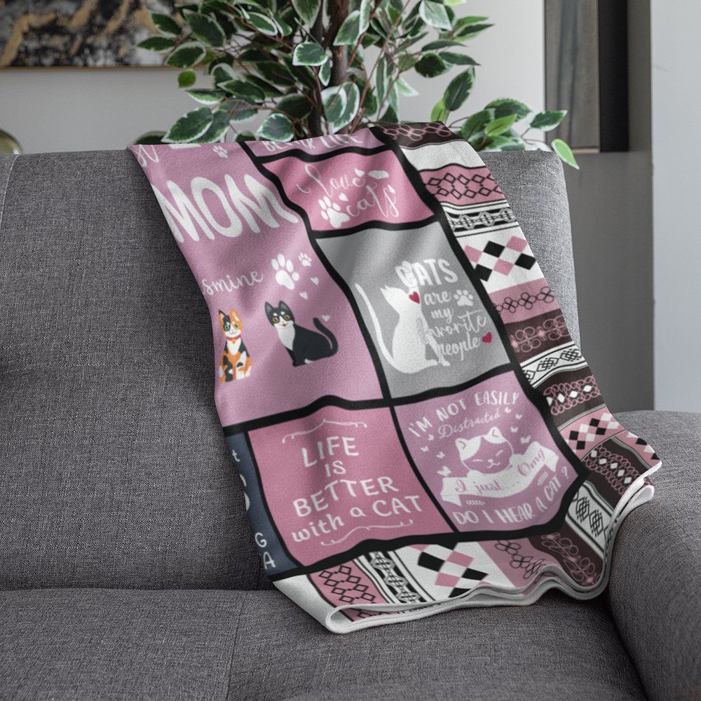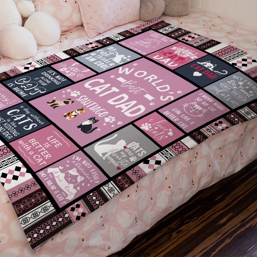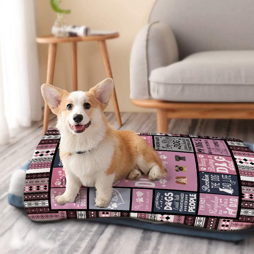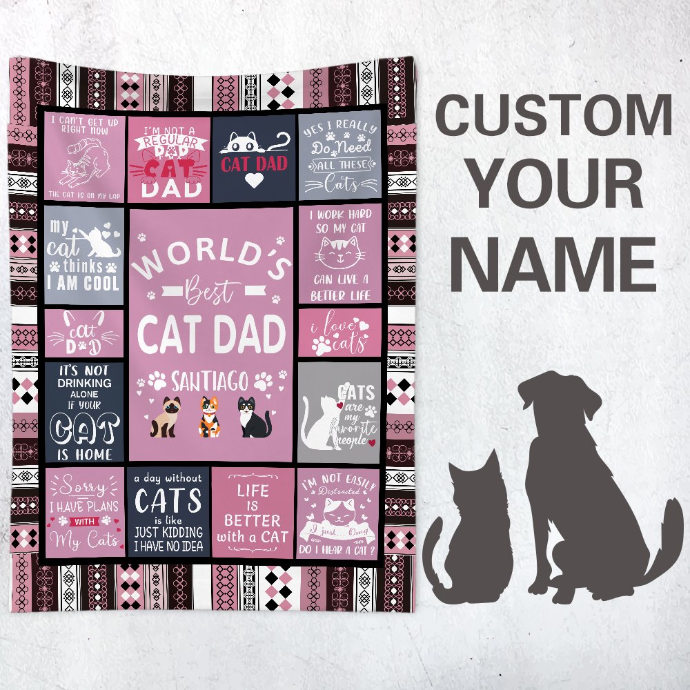 Our pet blanket can choose from a spectrum of pet themes cat dad, cat mom, dog dad, dog mom and customize text to create a one-of-a-kind pet blanket that perfectly suits your style and preferences.