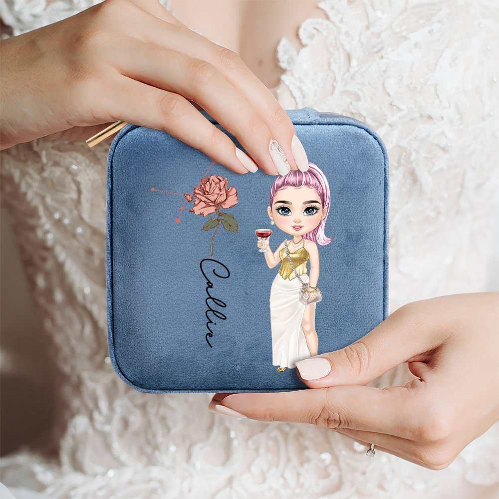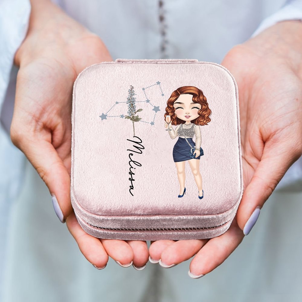 This Personalised mirror jewellery box is thoughtfully designed for fashionable women who appreciate individuality. Combining customized zodiac birth flower elements with a customizable cartoon female character creates a unique, Personalised piece that reflects personal identity. You can customize your name on it to make it more special.